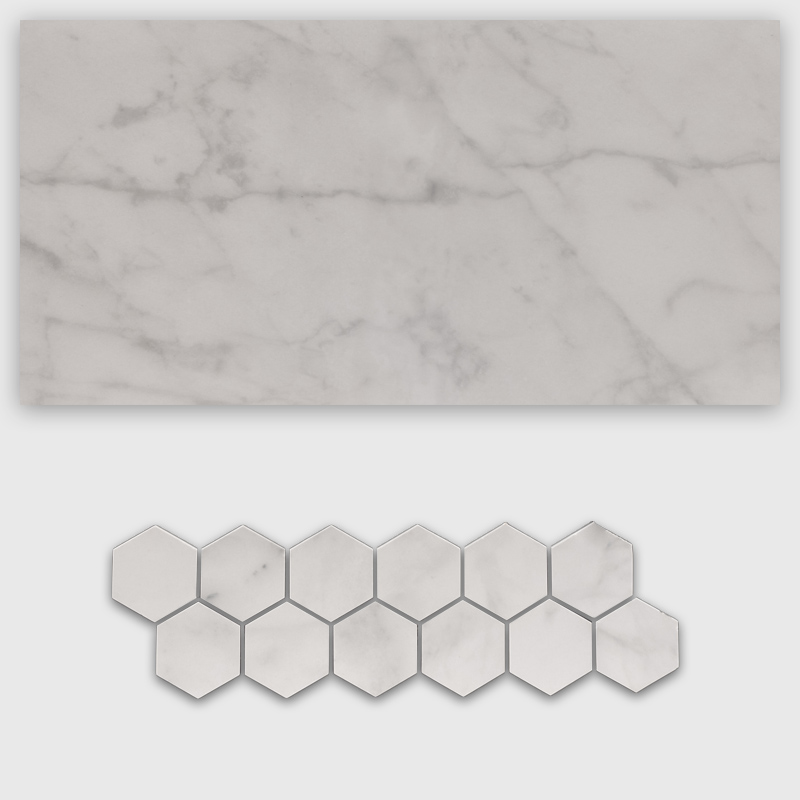Color options include: Carrara Abisso Polished Carrara Abisso Matte Perla Grigia Polished Perla Grigia Matte Statuario Brina Polished Statuario Brina Matte